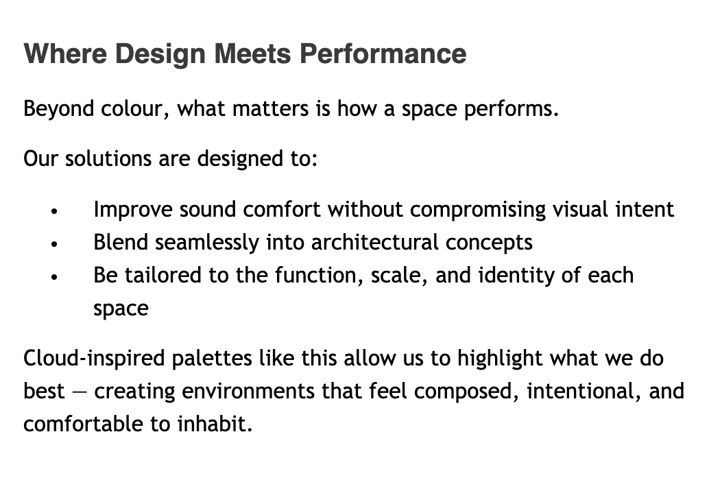 Alfa provides professional and consultative services covering Acoustics for Lighting, Furnishings and Atmospheric condition.