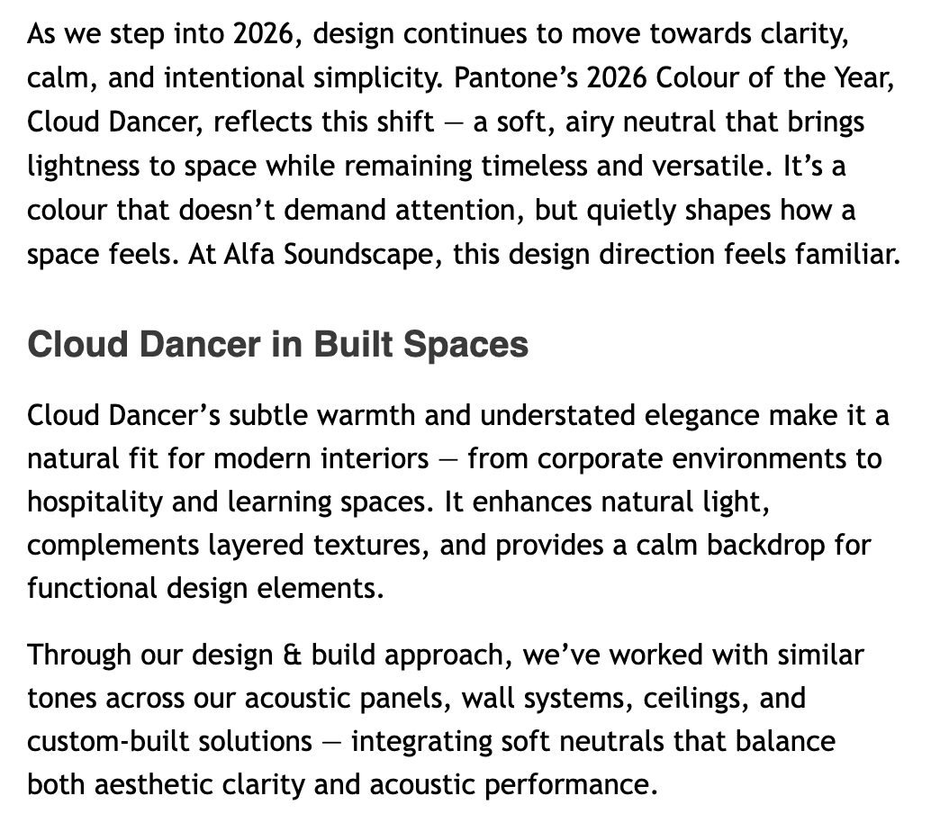 2026 Colour Spotlight: Cloud Dancer, Designed for Calm
