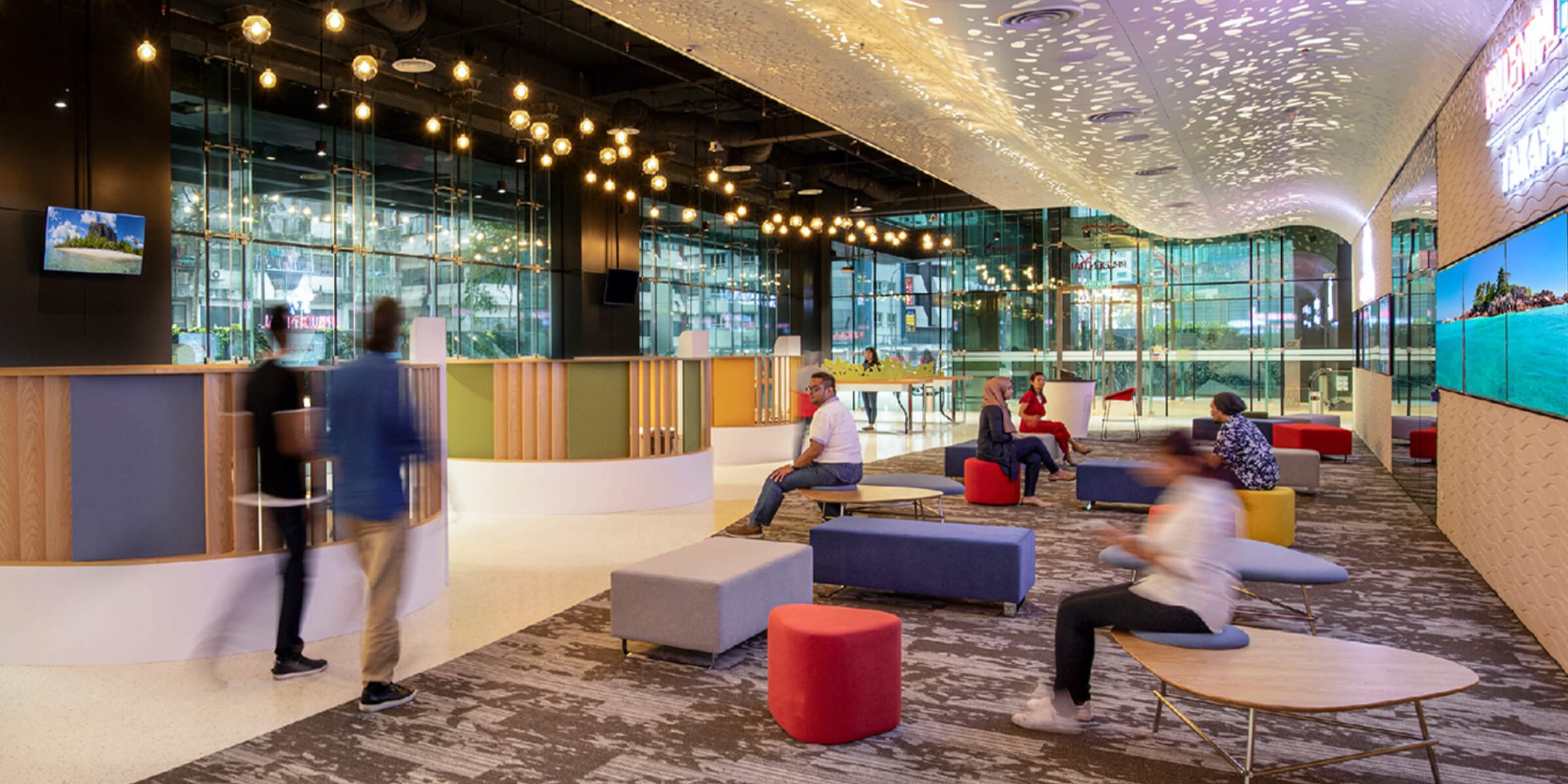 Multinational Semiconductor Company Multinational Semiconductor Company Kulim Completion: 2019 Products: Ezy Screen, Pre-cut to shape wall panels, Printed Acoustic Panels, Acoustic Lamp, Acoustic Ceiling Baffles, Acoustic Panel Carving in Rib…